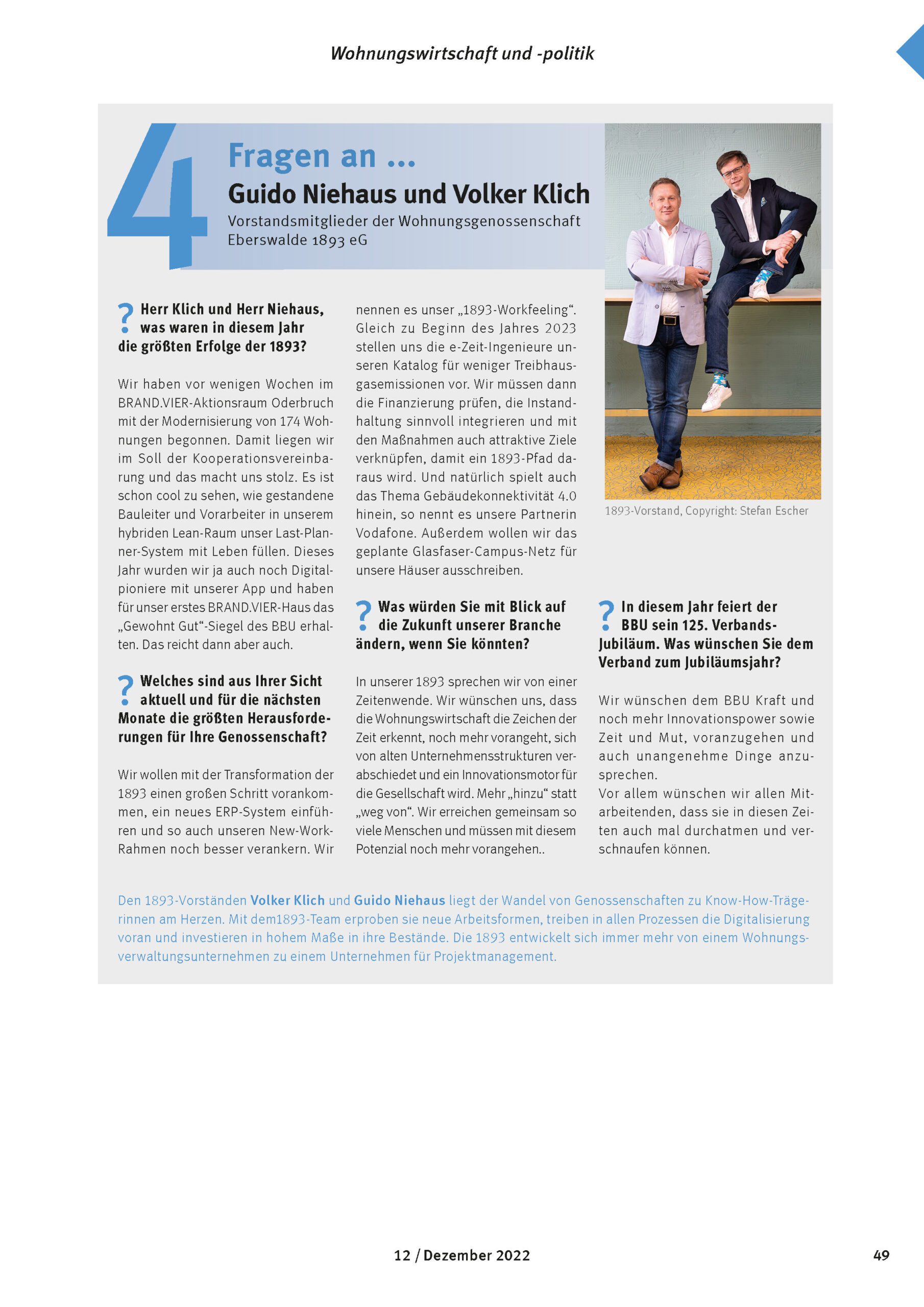 Zum Jahresende hatte der BBU Verband Berlin-Brandenburgischer Wohnungsunternehmen e.V. noch vier Fragen an unseren Vorstand. Hier das komplette Interview:
